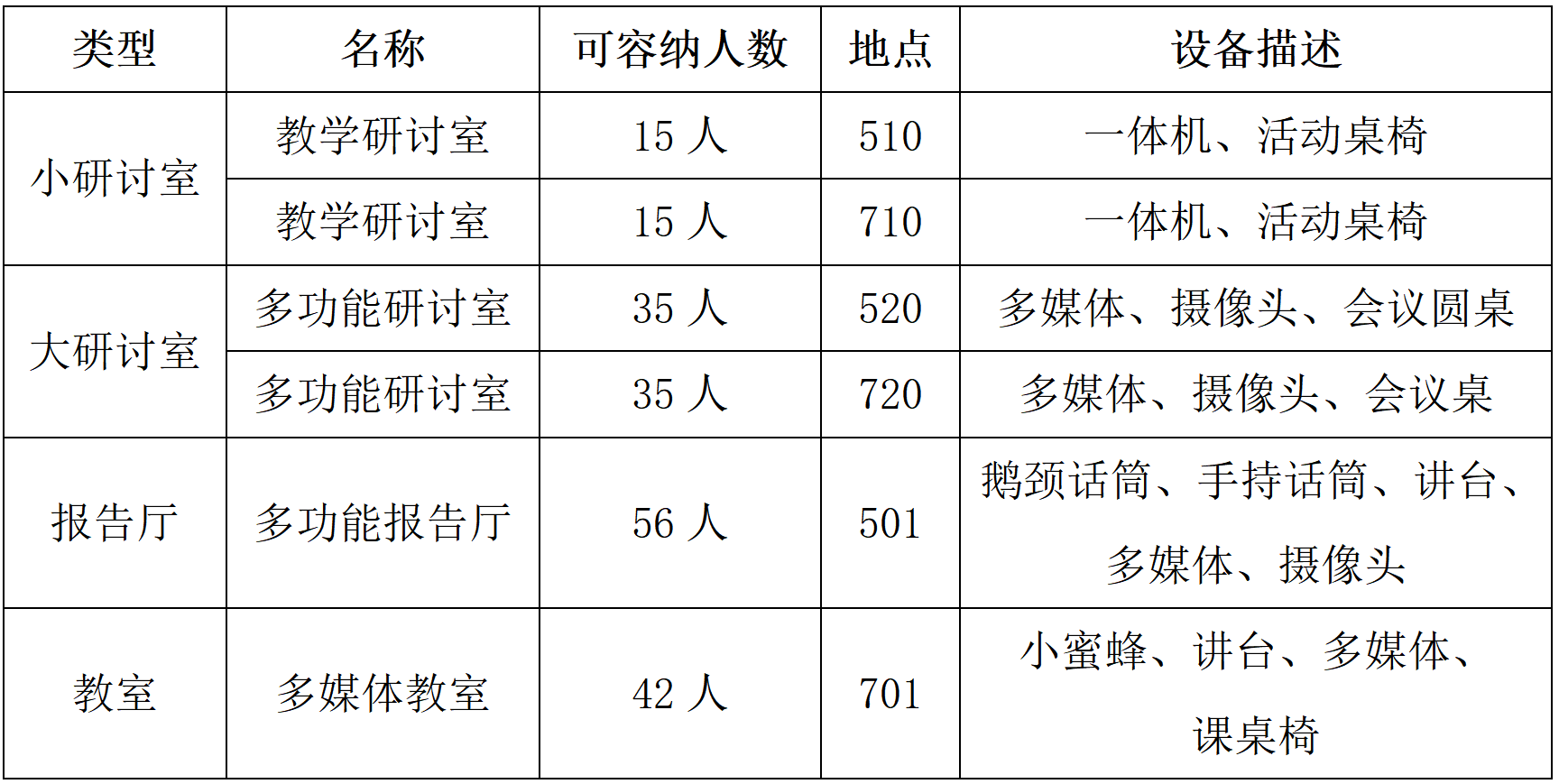 文科综合楼南楼5、6、7楼多功能室,具体范围可见下表: