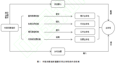 村级妇联组织是将农村妇女带入乡村治理参与的重要组织,激活农村妇女治理参与度的关键是培育农民主体性。农民主体性包含意识主体性、行动主体性、公共主体性和发展主体性四个维度。意识主体性体现为农民对自身权益与角色地位的认知觉醒;行动主体性表现为农民主动参与各类乡村建设活动;公共主体性反映在农民积极投身乡村公共事务管理;发展主体性则彰显于农民对乡村长远发展的主动谋划与自我发展能力的提升。村级妇联组织通过宣传教育、协商动员、模范激励和可持续发展机制来重塑农民主体性。增强群众性是妇联组织激活农民主体性的基本前提,主体性建构的基础在于妇联在融入治理体系中把农民带进治理场域。治理功能的实践是妇联重塑农民主体性的关键要素,将治理理念转化为实际行动,以具体治理实践塑造农民主体性。